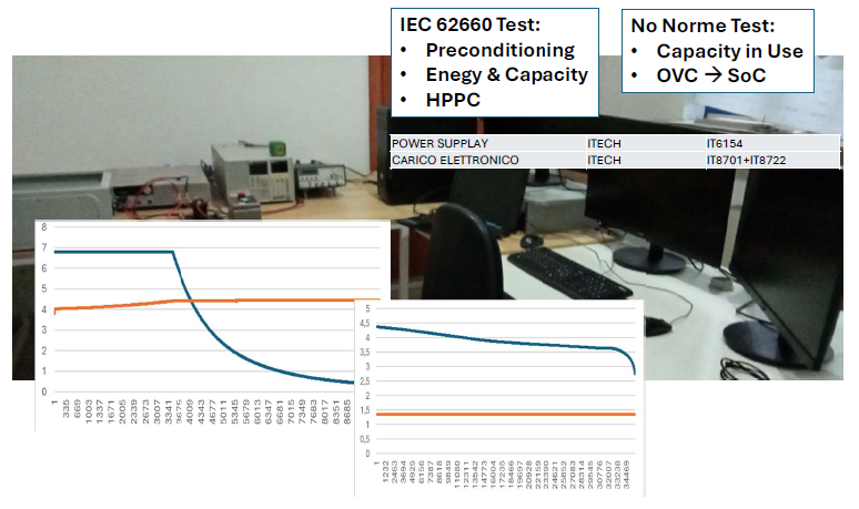 Prove su moduli secondo IEC 62660 e cicli non normati.